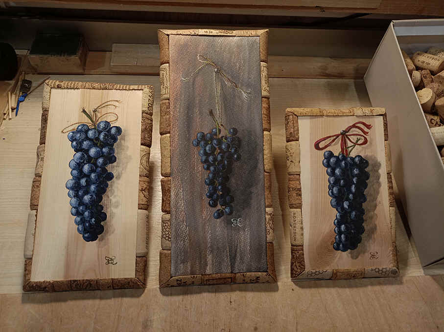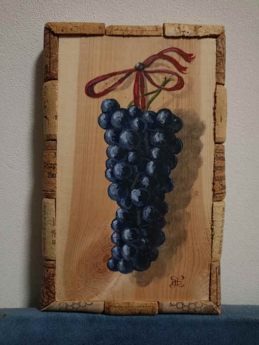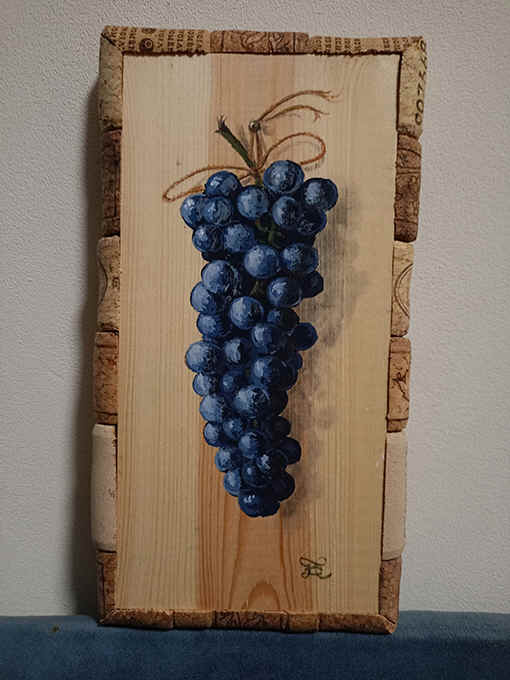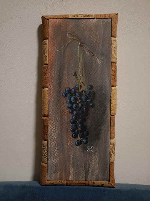 Виноград. Темпера на доске. Идея с рамой из пробок